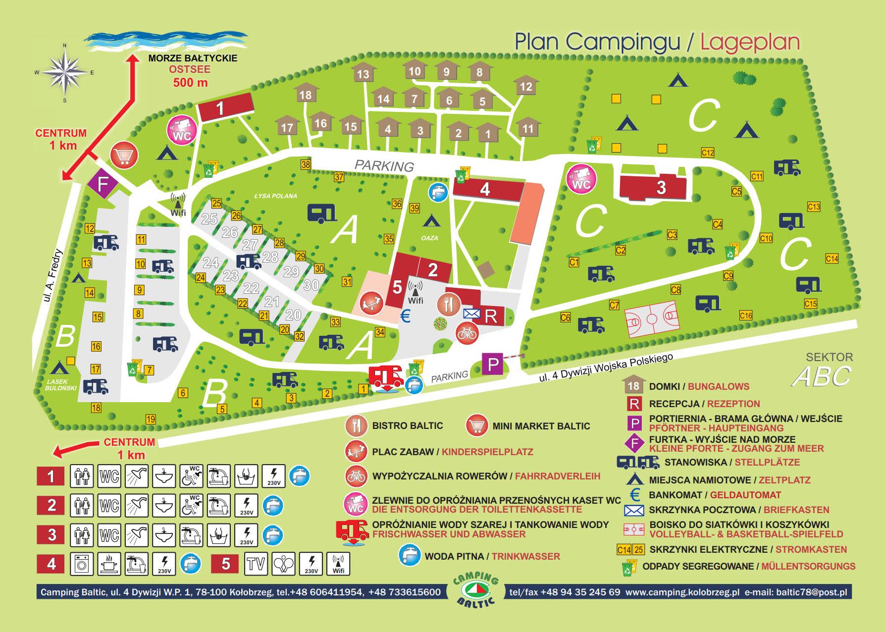 Duży Camping nad polskim Bałtykiem na którym możesz "rozbić swój mały obóz". Położony jest w otoczeniu zieleni parku nadmorskiego w uzdrowiskowej strefie Kołobrzegu. Bliskość morza, piaszczystej plaży, ścieżek rowerowych oraz zabytkowego centrum miasta czyni go jeszcze bardziej atrakcyjnym i funkcjonalnym z punktu widzenia turysty. Dodatkowo czyste powietrze oraz wspaniały mikroklimat jest idealnym rozwiązaniem dla turystów ceniących wypoczynek w zgodzie z naturą. Camping Baltic jest dobrze wyposażonym obiektem, czyste i zadbane zaplecze sanitarne to najważniejsze atuty naszego ośrodka. Dokładamy wszelkich starań by nasi Goście czuli się bezpiecznie i komfortowo.